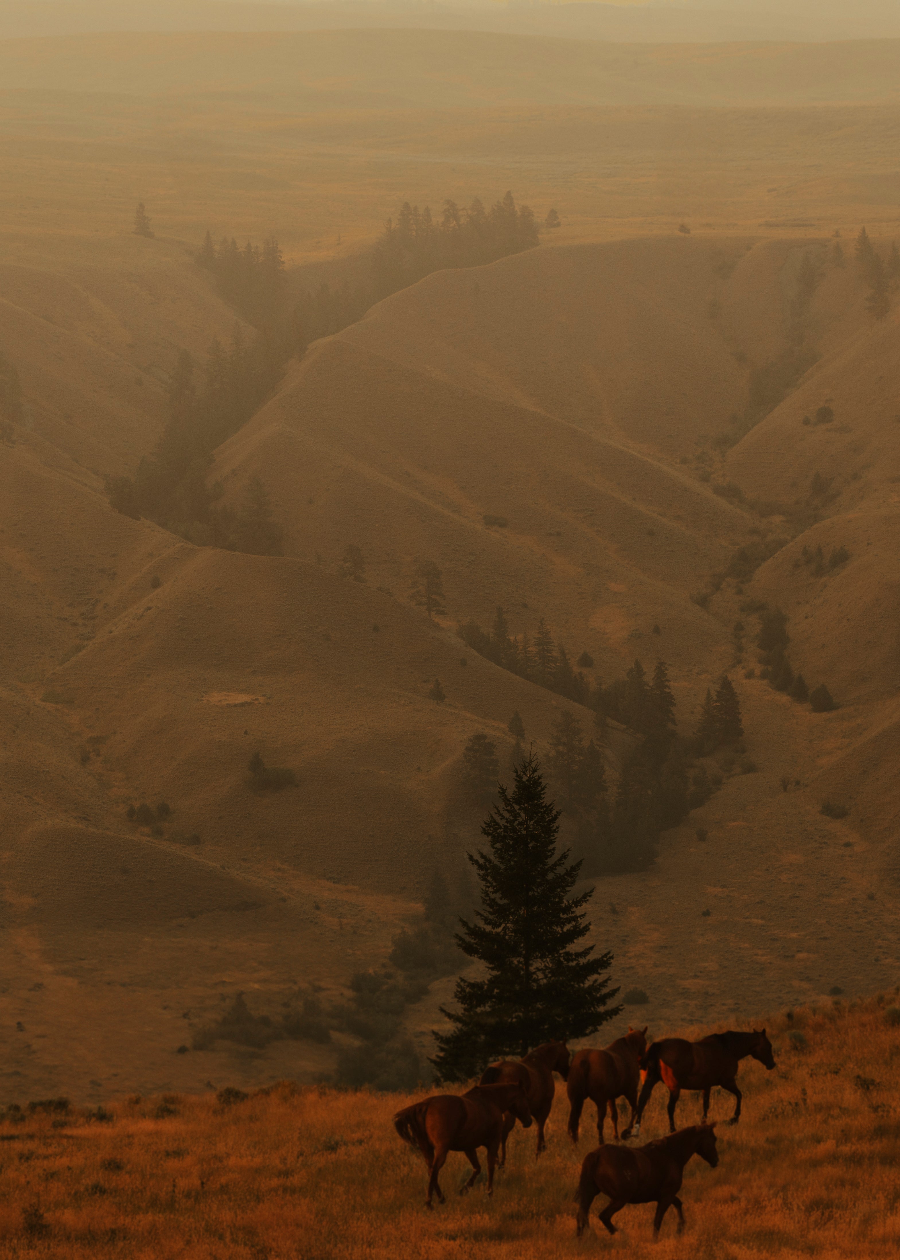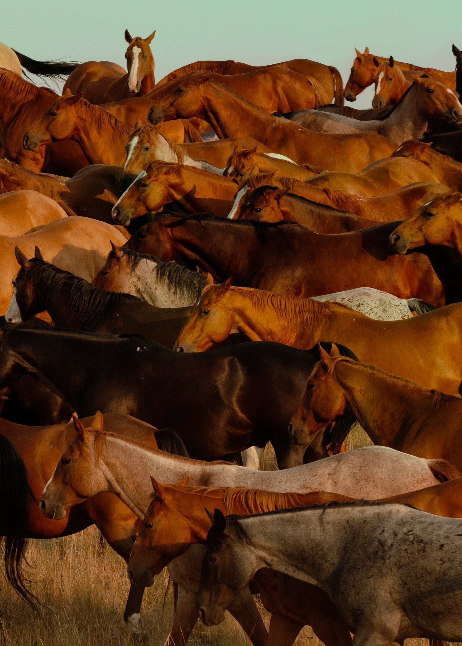 "Gathering" Captures a small portion of one of the largest remudas in north america, a crucial piece of the western way of life.